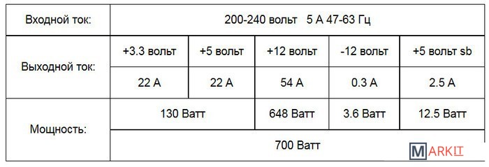 | Технические характеристики блока питания | |
