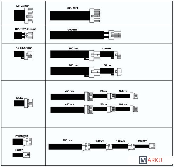| Модульное подключение кабелей питания | ✘ |