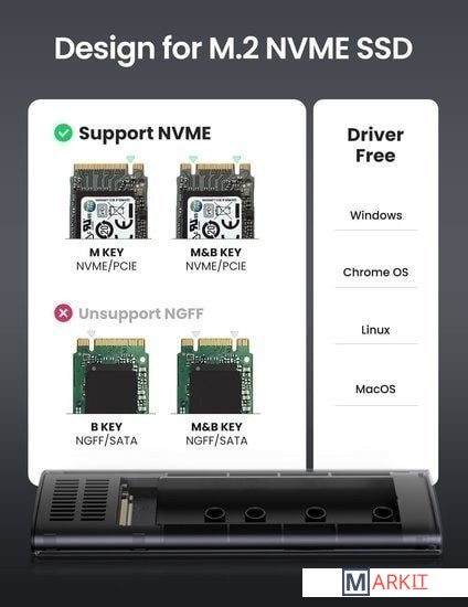Для M и M+B ключей PCIe NVMe, до 2 ТБ