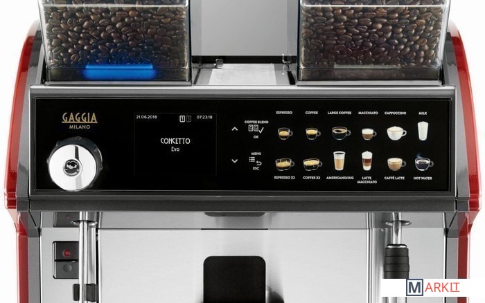 Шарнирная паровая палочка из нержавеющей стали.Одновременное приготовление двух чашек.Одновременная раздача напитков, горячей воды и пара.Два шлифовальных станка с керамическими лезвиями диаметром 64 мм.Автоматический счетчик порций.12 программируемых вариантов прямого выбора.