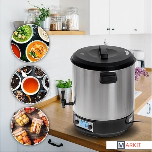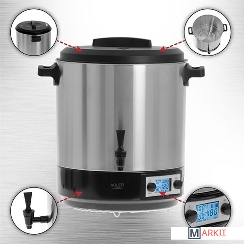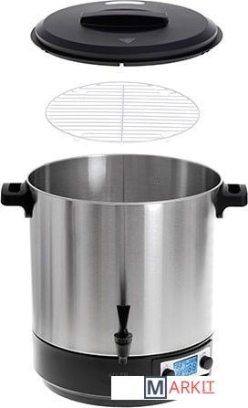 Электрический горшок для пастеризации - универсальный прибор, который подойдет не только для профессиональной, но и для домашней кухни. Модель AD 4496 предназначена для автоматического приготовления, подогрева блюд и напитков, кофе, чая, а также для пастеризации продуктов. Устройство оснащено решеткой для размещения банок на дне и функцией плавного регулирования температуры в диапазоне 30˚C-100˚C. Устройство идеально подходит для пастеризации, а также для подогрева напитков и блюд, например, супов или соусов. Емкость бака до 28 литров означает, что мы можем поместить в него сразу несколько банок среднего размера.Встроенный сливной клапанУдобные и прочные ручки для переноскиДлина шнура питания 1,5 мСъемная крышкаДиаметр резервуара 36 смГлубина бака 30,5 смМаксимальная мощность 2600 Вт
