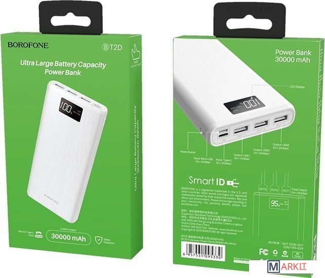 Markit » Портативные зарядные устройства » Портативное зарядное устройство Borofone BT2D 30000mAh (белый)