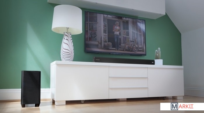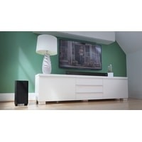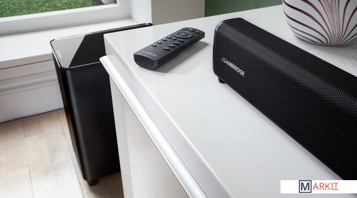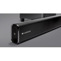 Акустическая система Cambridge Audio TVB2 v2 состоит саундбара и беспроводного сабвуфера. Саундбар имеет корпус небольшой высоты, переднюю панель которого закрывает защитная сетка из перфорированного металла. Под ней скрываются крупный светодиодный дисплей, а также пара фирменных широкополосных динамиков 57 мм. Сабвуфер же оснащен 165 мм динамиком.Cambridge Audio TVB2 v2 обладает хорошим набором входов, что позволяет сделать его основой современной AV-системы. Колонка имеет три HDMI-входа и один выход с поддержкой HDMI ARC, а также оптический и аналоговый входы. Саундбар оснащен Bluetooth-приемником с NFC. Система комплектуется полнофункциональным пультом дистанционного управления, а также имеет функцию настройки на работу с штатным пультом имеющегося пульта ТВ.В модели Cambridge Audio TVB2 v2 предусмотрена раздельная регулировка громкости звука саундбара и сабвуфера, а также имеется четырех-режимный эквалайзер. Это позволяет настроить звучание системы оптимальным образом в зависимости от параметров комнаты прослушивания, а также типа просматриваемого контента.