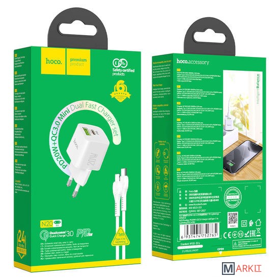 Markit » Зарядные устройства » Сетевое зарядное Hoco N20 (белый)