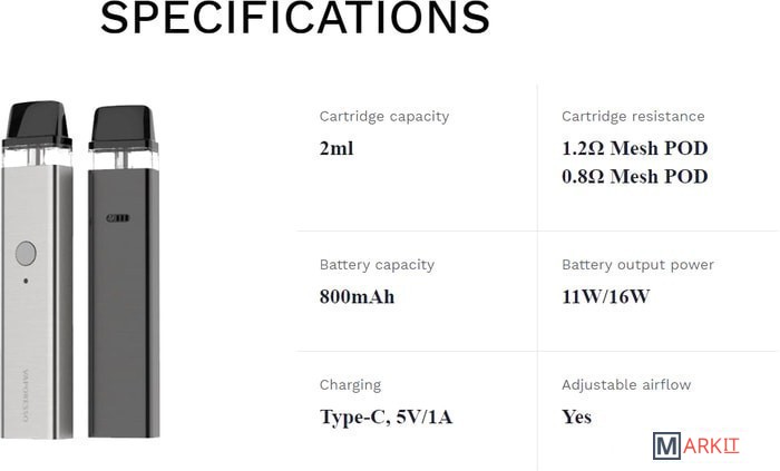 - картридж 2 мл с испарителем 0.8 Ом- картридж 2 мл с испарителем 1.2 Ом- кабель для зарядки- документация |