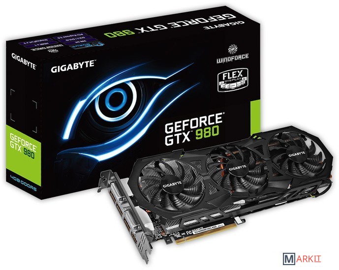 В основе GeForce GTX 980 лежит созданный с соблюдением 28-нм техпроцесса чип Maxwell GM204 с 2048 ядрами CUDA, 128 текстурными блоками (TMU), 64 блоками растеризации (ROP) и 2 МБ кэша L2 . Четыре 64-битных контроллера памяти в сумме составляют 256-битную шину памяти. Показатель TDP референсной модели находится на уровне 165 Вт.Чипы Maxwell 2-го поколения отличаются поддержкой геометрического движка Polymorph Engine 3.0, улучшенными методами полноэкранного сглаживания MFAA и DSR, специальной аппаратной поддержкой для ускорения глобального освещения VXGI, а также режимом энергопотребления GC5, предназначенным для снижения мощности при легкой нагрузке — такой как декодирование видео с помощью аппаратного кодека H.264 (NVENC).